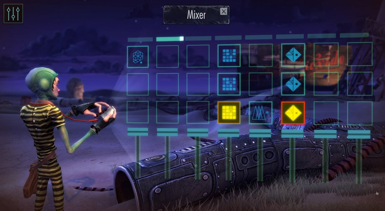 - Неординарный геймплей. На первый взгляд это типичный квест, но его суть заключается в звуках. Каждый новый звук расширяет возможности персонажа. Продвигаясь по сюжету, пользователь открывает не только новые звуки, но и музыкальные композиции. В финале игры можно устроить концерт, примерив на себя образ профессионального ди-джея. Каждый звук органично вплетается в фоновую музыку, усиливая ощущение причастности к необычному миру и погружение в процесс.