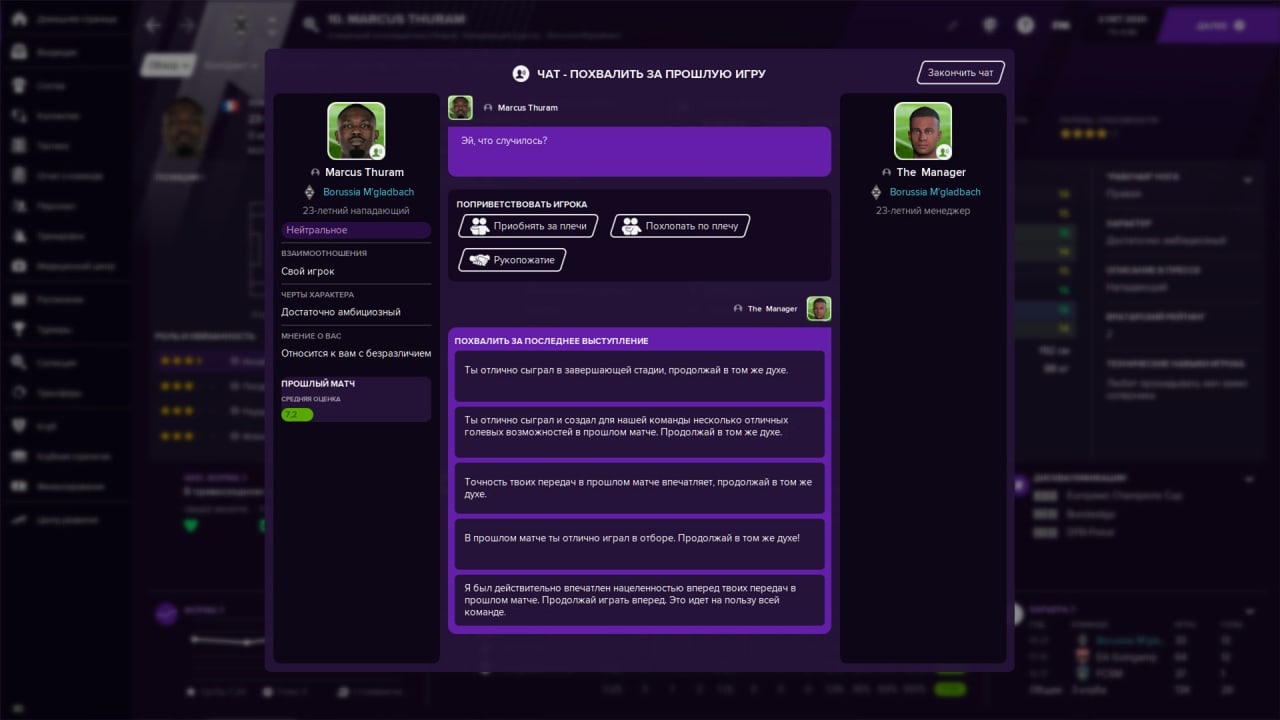 Пользователь самостоятельно планирует тренировки, разрабатывает стратегии к матчам, управляет составом, включая перспективных молодых игроков. Трансферный рынок также в его руках – ведутся переговоры и общение с прессой. В Football Manager 2021 появились новые элементы взаимодействия. Теперь можно общаться с подопечными и журналистами, используя жесты. Частота бесед с футболистами возросла, а мнения о тренере формируются на основе его поведения.