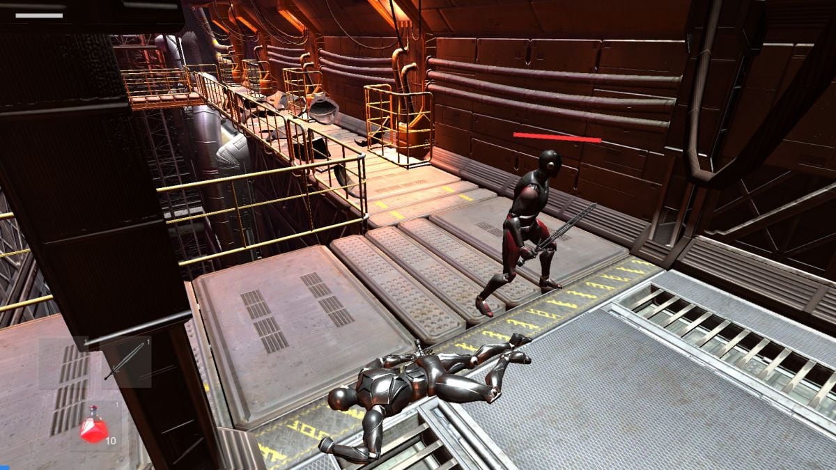 Сюжетная кампания охватывает множество уровней, разворачиваясь на заброшенной фабрике по производству роботов с искусственным интеллектом. Внутри остались андроиды, агрессивно настроенные по отношению к главному герою. Противостоять им предстоит с помощью одноручного меча с острым лезвием, наносящим серьезный урон при попадании. Пользователь может комбинировать различные удары для создания комбо, что повышает эффективность в борьбе с врагами. Исследуя локации, геймер находит полезные предметы и зелья, усиливающие протагониста, который отправился на завод ради возвращения содержимого секретного сундука и скорейшего покидания этой опасной местности.