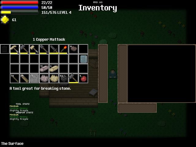 Геймер может сражаться с монстрами или освоить множество профессий. Бои пошаговые, а перемещение в мирные моменты также происходит по очереди. Все существа на экране действуют одновременно с протагонистом. В дополнение к врагам, встречаются дружественные NPC, с которыми можно торговать в деревнях. У героя есть ограниченный инвентарь для хранения лута и панель быстрого доступа для использования оружия или инструментов. Также доступны магические заклинания, которые требуют восполняемого запаса маны.
