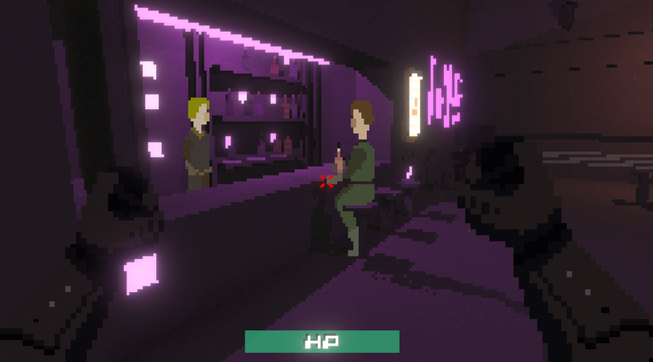 Персонаж может передвигаться, взаимодействовать с окружением, подбирать предметы, драться в рукопашную и стрелять. Оружие можно найти на локациях, приобрести у торговца или забрать у павших врагов. С поверженных оппонентов выпадают деньги и патроны. По улицам бродят не только вооруженные преступники, но и мирные жители, гуляющие по узким коридорам или отдыхающие в барах. Протагонист может заказать себе напиток. На голографических досках доступны контракты — квесты, где нужно найти и устранить конкретного бандита в мегаполисе за вознаграждение.
