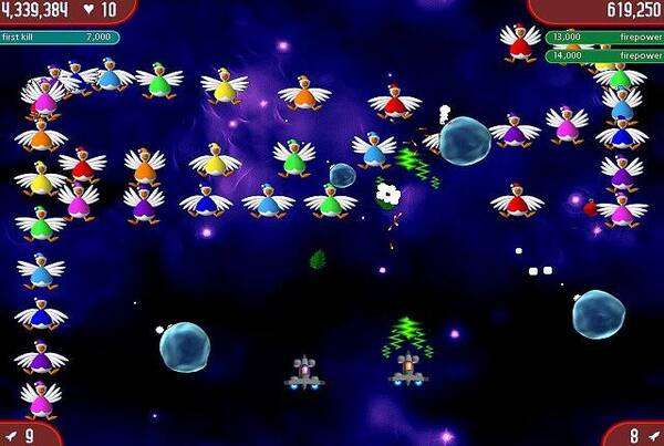 Сборник включает 9 игр. Оригинал позволяет играть в одиночку или вдвоем на одном ПК. Звездолет перемещается влево и вправо, собирает бонусы для улучшения оружия и уничтожает птиц, защищая родную планету. Противники атакуют яйцами. В сиквеле, The Next Wave, пернатые враги попытаются захватить всю Солнечную систему. Здесь появились уникальные волны оппонентов, а корабль научился двигаться в горизонтальной и вертикальной плоскости. Бесконечные сражения сменились на ограниченное количество боев с финальным боссом в конце.