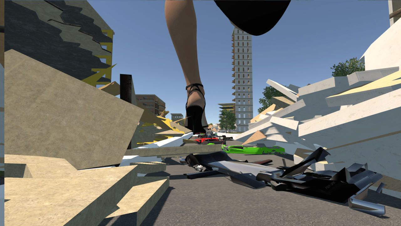 Геймер управляет одним из выживших человечков. Задача – выжить в этом хаосе, спасая других и избегая гигантских ног. Доступно три карты: мегаполис, пригород и пляжная зона. Можно выбрать, кто станет разрушителем. В игре представлены три типа мужчин, три молодые женщины и одна девочка-кошка. Все персонажи различаются только внешне. На одной карте может находиться лишь один из них. Огромные барышни передвигаются в купальниках и не скупятся на язвительные комментарии и угрозы. Также есть возможность стать гигантом и начать топтать крошечных человечков.