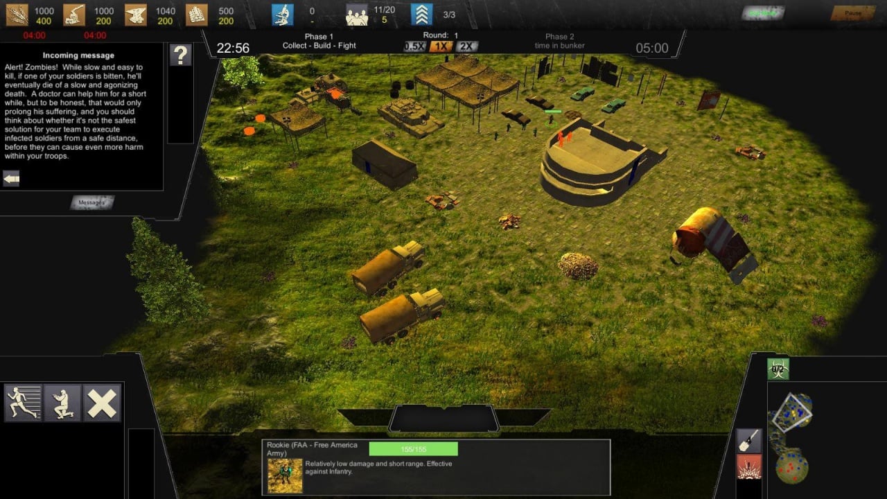 Пользователь управляет людьми. Как и в других стратегиях, необходимо собирать ресурсы и строить базу. Однако здесь лагерь возводится не на поверхности, а под землей. Для строительства новых помещений требуется сначала выкопать и освободить пространство. Доступно 12 типов зданий. Периодически геймер отправляет на поверхность солдат (всего 11 юнитов) для уничтожения врагов и сбора полезных материалов. Строения и бойцы подлежат улучшению через три технологических уровня. Военная техника включает танки, джипы и вертолеты.