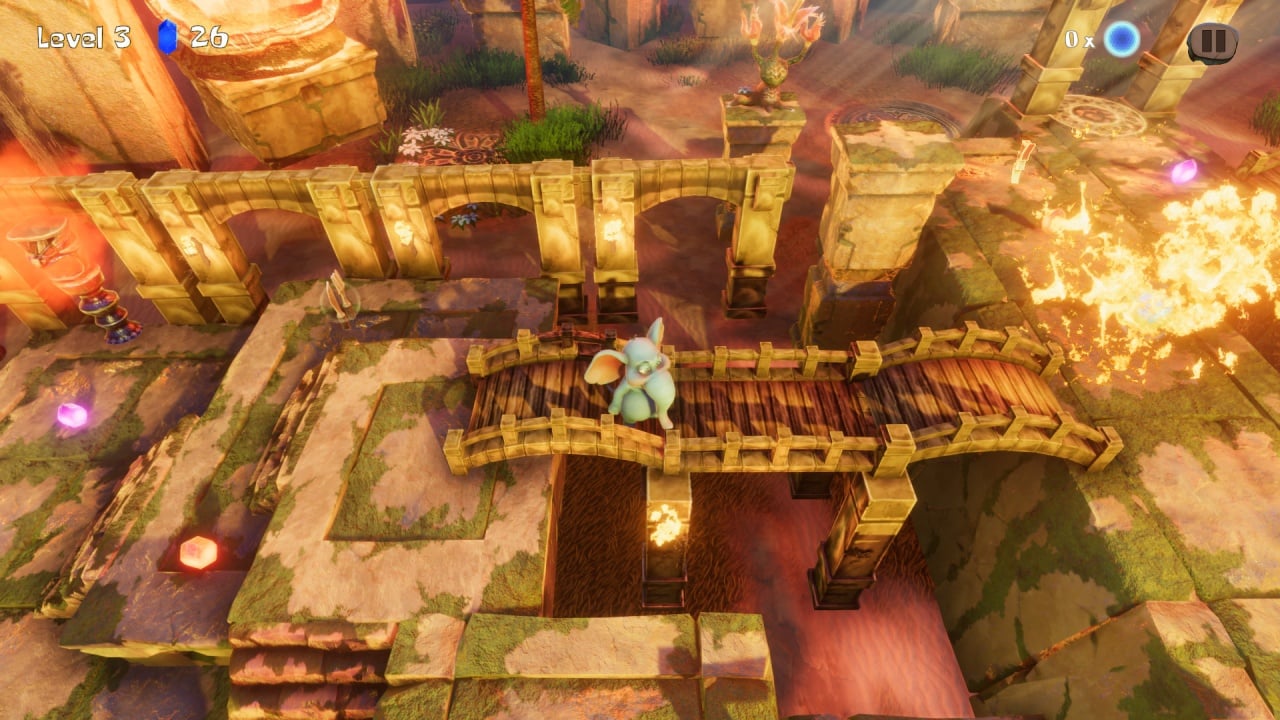 Проект включает 24 уровня, где необходимо собрать все волшебные кристаллы, разбросанные по локации, чтобы открыть выход на следующую карту. На пути встречаются враждебные животные — тигры, крокодилы и другие существа, которые всеми силами мешают сбору кристаллов. Ловушки, такие как огнеметы и ядовитые споры растений, добавляют еще больше опасности. Один неосторожный шаг, и персонаж погибает, заставляя начинать уровень заново.