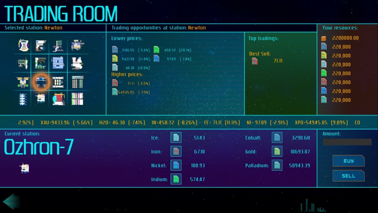 Приобретайте голографические приманки, щиты, лазерные ускорители и другую вспомогательную экипировку. Также доступна покупка новых боевых кораблей. Постепенно вам откроется возможность торговать кобальтом, никелем, палладием и другими ресурсами, увеличивая свой капитал. Перед началом миссии выбирайте маршрут для своего движения и для торгового судна.