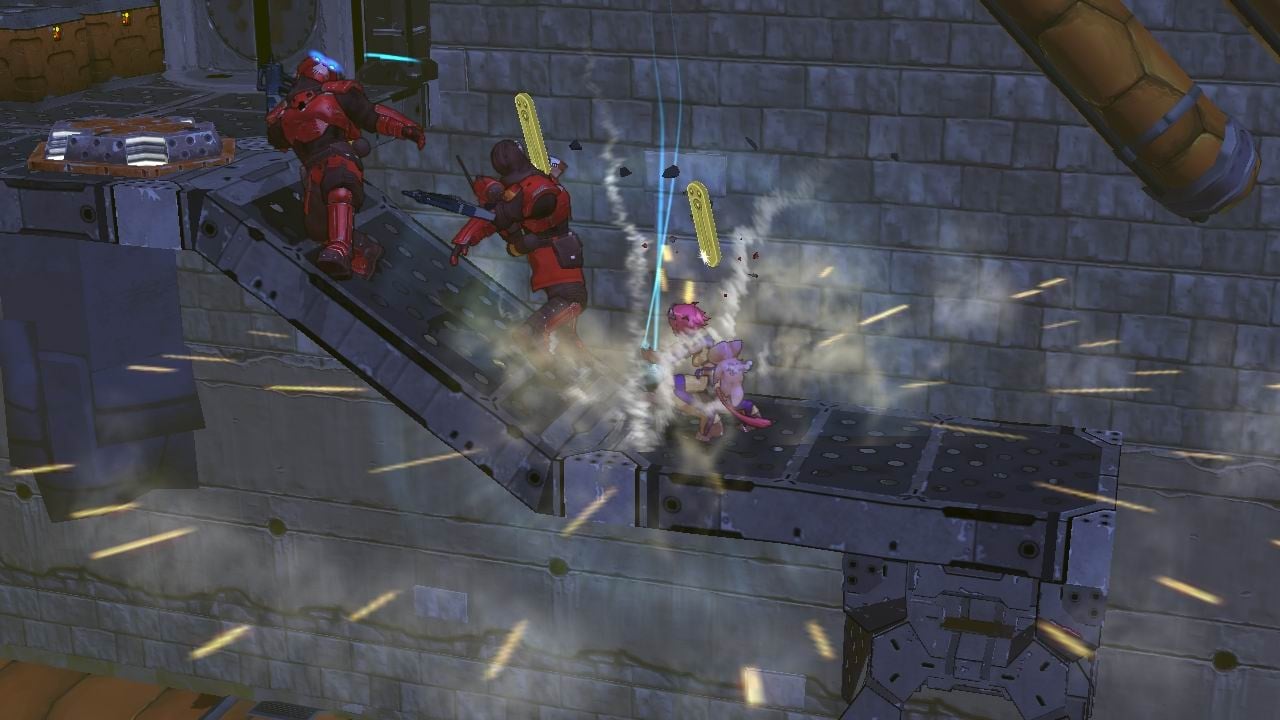 С ней всегда рядом лучшая подруга Скиффи, готовая защитить героиню. Кампания Blade Kitten состоит из 13 уникальных уровней, где две локации предлагают прокатиться на инопланетном скакуне по имени Нут. Способности Кит позволяют использовать кошачьи рефлексы и ловко перемещаться по окружающему миру.