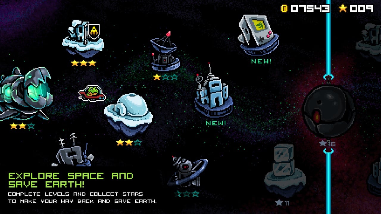 Геймплей предлагает взлетать в воздух, обрушиваться на врагов с неимоверной силой и использовать супер-рывок на короткие дистанции. Каждый уровень — это полоса препятствий, которую нужно преодолеть за минимальное время. На каждом этапе спрятаны десятки ценных предметов. Постарайтесь найти все секреты, разбросанные по Галактике.