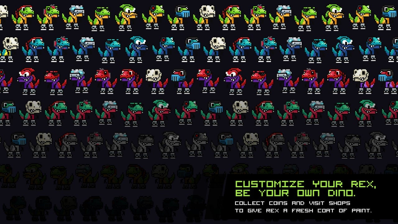 Доступны как одиночный режим, так и кооперативный. Объедините силы с другом, чтобы пройти сложные уровни вместе. Синхронно прыгайте и уничтожайте всех врагов на своем пути. Кастомизируйте Рекса в обширном редакторе. Собирайте трофейные предметы, чтобы создать уникального героя, который будет выделяться среди остальных.
