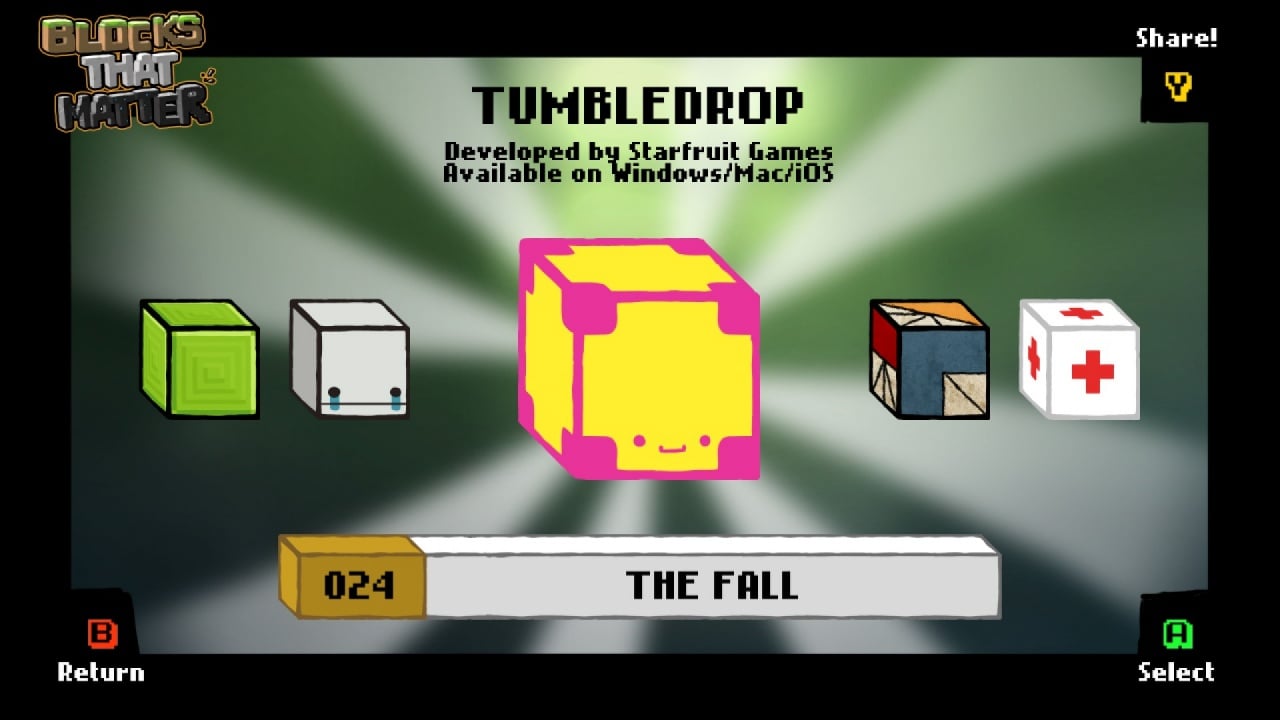 Сюжет Blocks That Matter погружает в мир двух инди-разработчиков, Алексея и Маркуса. Их преследуют неудачи, и единственное, что может изменить ситуацию — это их долгожданный проект. Геймер управляет роботом-тетроботом, андроидом, способным сверлить блоки и конструировать объекты из четырех частей. Уничтожайте линии из восьми и более блоков, преобразуя конструкции.