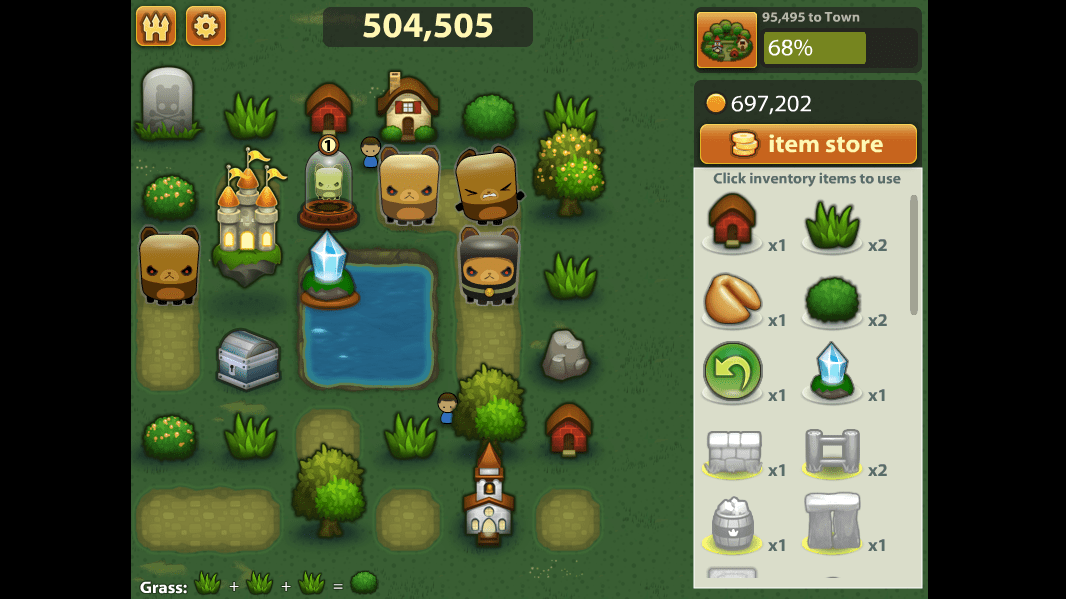 Triple Town объединяет элементы градостроительных симуляторов и головоломок "три в ряд". Проект заимствует упрощенное строительство поселений, а также механику соединения трех одинаковых предметов для создания более сложных объектов.