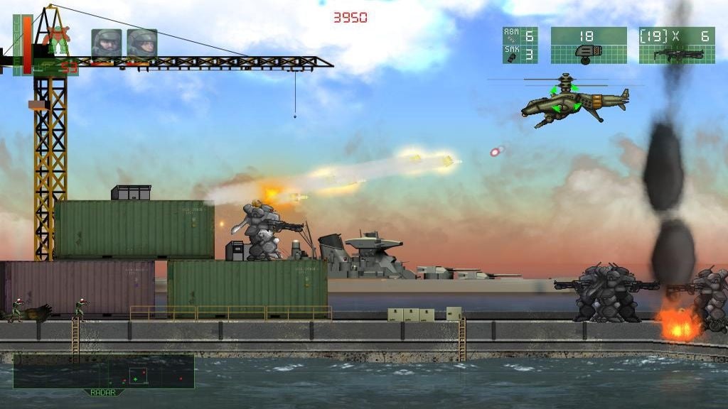 В проекте 16 уровней, не считая обучающей локации. После каждого этапа подсчитывается рейтинг пользователя. Для уничтожения врагов доступен арсенал из 17 видов вооружения, который открывается постепенно. Пушки требуют патроны. Если не следить за амуницией, можно остаться без боеприпасов даже для обычных противников или боссов. У робота есть полоска HP, которая медленно восстанавливается сама по себе.