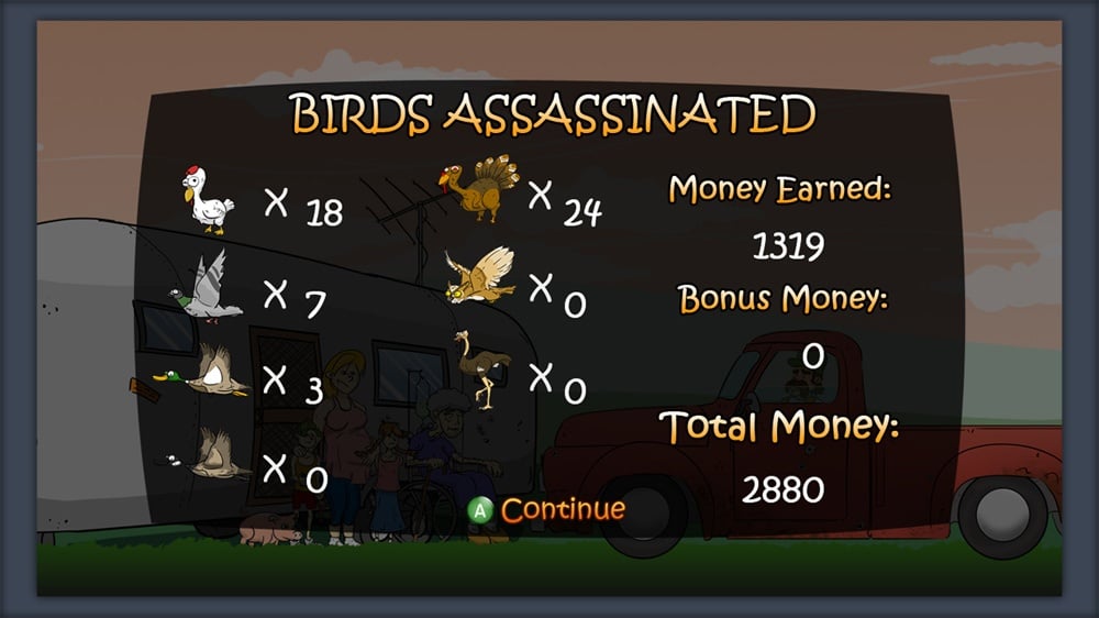 Это шутер с юмористическим уклоном и боковым видом. В Bird Assassin доступны разные виды оружия: снайперские винтовки, АК-47, обычный, тяжелый и автоматический дробовик, а также многоствольный пулемет. Каждое оружие можно купить и улучшить в магазине, где также доступны бронежилеты и спиртные напитки. Валюта зарабатывается за уничтожение птиц, а монетки можно найти в окрестностях или собрать с поверженных врагов. В проекте не обойдется без крови и мяса.