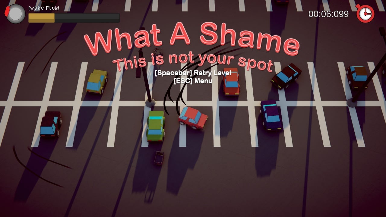 Where Is My Parking Spot — казуальная топ-даун аркада, где главная задача — найти место для парковки. У вас есть выделенное пространство, но путь к нему усеян трудностями. Каждый раз, когда вы жмете на тормоза, вытекает тормозная жидкость. Вопрос остается: где же моё место для парковки?