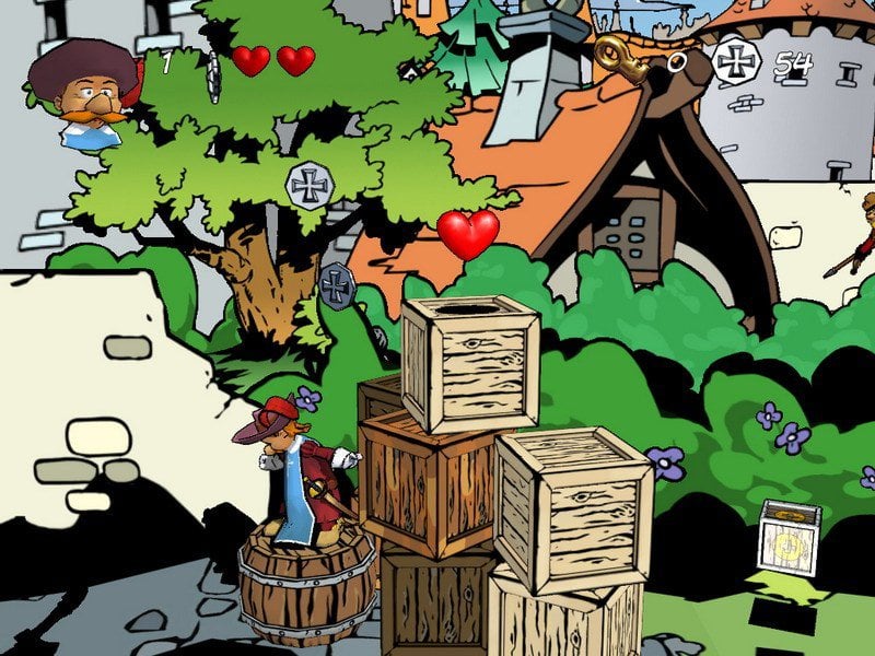 Геймплей Трех мушкетеров предлагает вам взять под контроль неугомонного Портоса и пройти через множество разнообразных уровней. На вашем пути встретятся слуги кардинала, а также опасные ловушки и препятствия. Каждое испытание включает в себя оригинальные головоломки различной сложности. На локациях собирайте бонусы и улучшения. В зависимости от ваших действий, история может закончиться тремя разными способами. Проект наполнен отсылками к оригинальному произведению и юмором, который развлекает на протяжении всего прохождения. Сражайтесь с пауками, призраками и лучниками, используя свою верную шпагу. Особенности игрового процесса:
