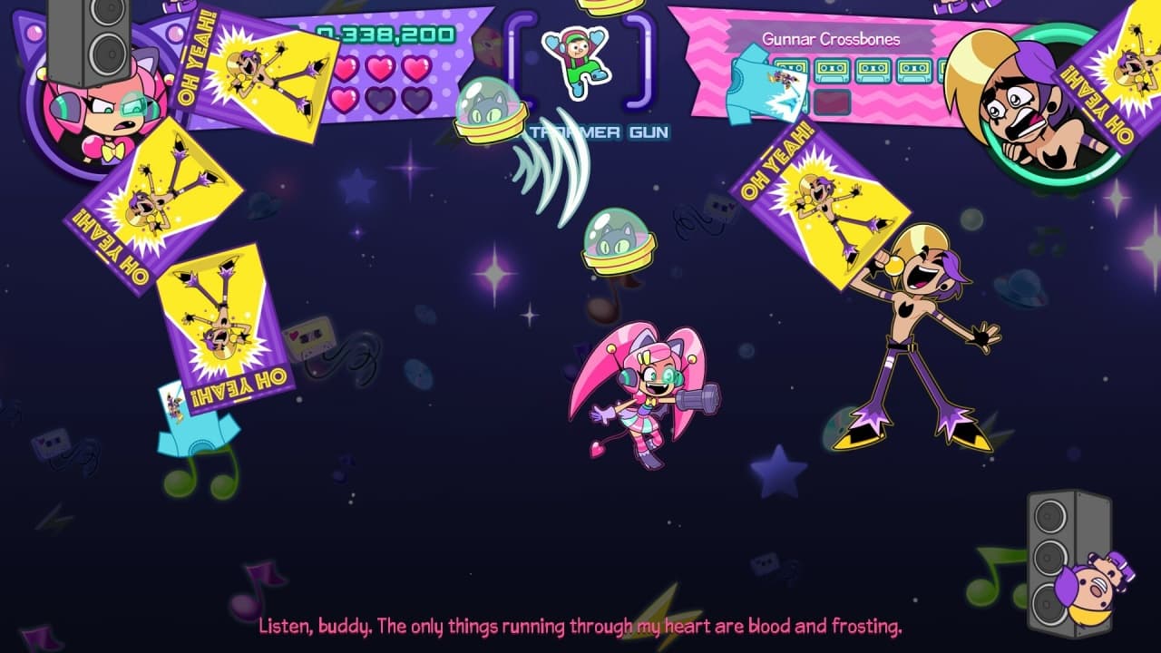 Боссы представляют собой мультифазовые поединки. Они выполнены в виде самых фантасмагорических и нелепых врагов. Путешествие по галактике не обойдется без безостановочной абсурдной болтовни. В центре внимания - космическая корова, и лишь в процессе прохождения станет известно, зачем она здесь.