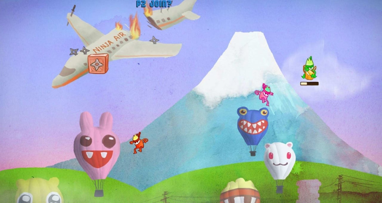 Shuriken Skies — это захватывающая двухмерная аркада для компании до четырех человек. В начале тайтла выберите одного из ярких ниндзя и прыгайте из падающего самолета. Однако парашют — единственный на всех. Что это значит? Вам предстоит сражение за спасительный трофей прямо в воздухе! Наслаждайтесь этим безумным действием!