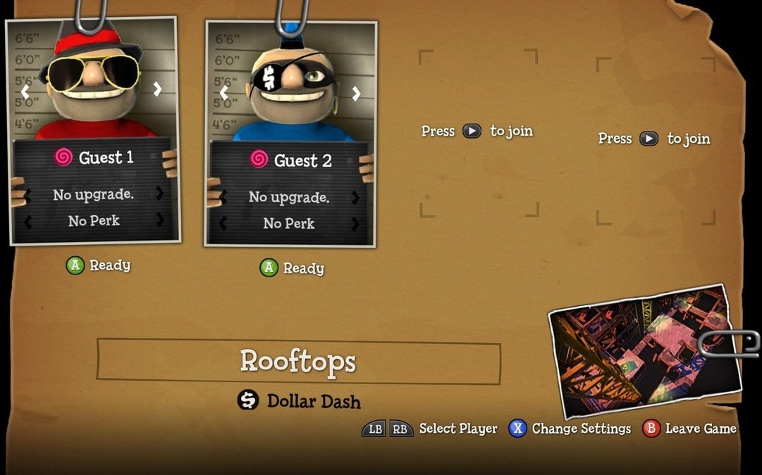 На картах доступно множество видов оружия, защитных средств, бонусов и усилений. Эти предметы появляются случайным образом, заставляя игроков адаптироваться к новым условиям. Каждые несколько минут обстановка меняется в реальном времени. Мост может исчезнуть, охрана появится внезапно и многое другое. Оружие представлено в нескольких типах: на каждой карте обычно встречается 2-3 вида. На украденные деньги можно приобрести улучшения и прокачать навыки персонажа.