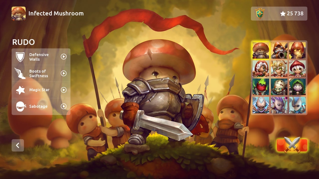 - Четыре уникальных Грибных племени с особыми способностями и 12 героев-полководцев, способных изменить ход сражения.