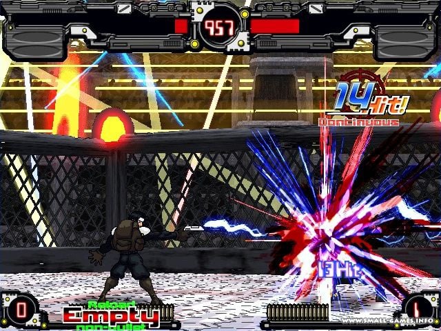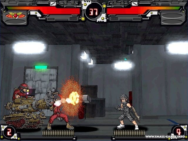 Metal Gun 3 Shout of the arms - это двухмерный файтинг, где бойцы используют не только кулаки и ноги, но и огнестрельное оружие. Пистолеты, автоматы, базуки и взрывчатка становятся частью жестоких схваток. Персонажи могут также оседлать различные транспортные средства: мотоциклы, танки, вертолеты и прочее.