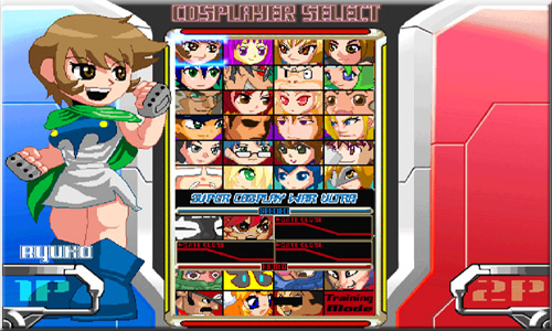Анимированные бэкграунды насыщены деталями. Доступна сюжетная аркада, где, проходя за определённого бойца, открывается его предыстория. Завершив сюжетную ветку, геймеры смогут разблокировать новых персонажей. В любой момент можно обратиться к разделу Гид, чтобы изучить способности выбранного бойца. В проекте представлены разные режимы, включая Normal Mode и Battle Royale. Игровой процесс Super Cosplay War Ultra GENKAITOPPA — это классический файтинг, где сражаются два героя. Доступны разнообразные удары, захваты, блоки, контратаки и прыжки. Изучайте слабости врага и наносите сокрушительные атаки. Играйте в одиночку или сражайтесь с другом в режиме Версус. Выбирайте своего протагониста или используйте механизмы случайного выбора.