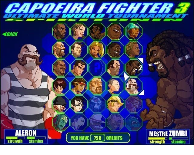 Capoeira Fighter 3: World Tournament — двухмерный файтинг, где каждое сражение наполнено экзотическими боевыми искусствами. Здесь представлены такие стили, как муай-тай, кунг-фу, капоэйра и многие другие. Игроков ждут разнообразные локации, мощные комбо-атаки, внушительный выбор бойцов и зажигательные музыкальные треки. Каждый персонаж обладает уникальным стилем боя и индивидуальными движениями. В арсенале героев — несколько видов атак, комбо-удары, захваты, блоки и контратаки. Уворачивайтесь от атак противника, ловите его на ошибках и наносите сокрушительные контрудары.