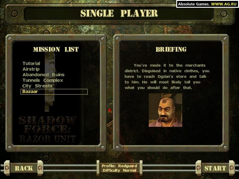 Главный герой Shadow Force: Razor Unit – агент элитного подразделения секретной организации Air Force Special Operations. Вместе с отрядом Delta он проникает на территорию террористов с целью ликвидировать саддамо-хусейновскую ячейку на Ближнем Востоке. Однако, операция идет не по плану, и протагонист оказывается отрезанным от своей команды.