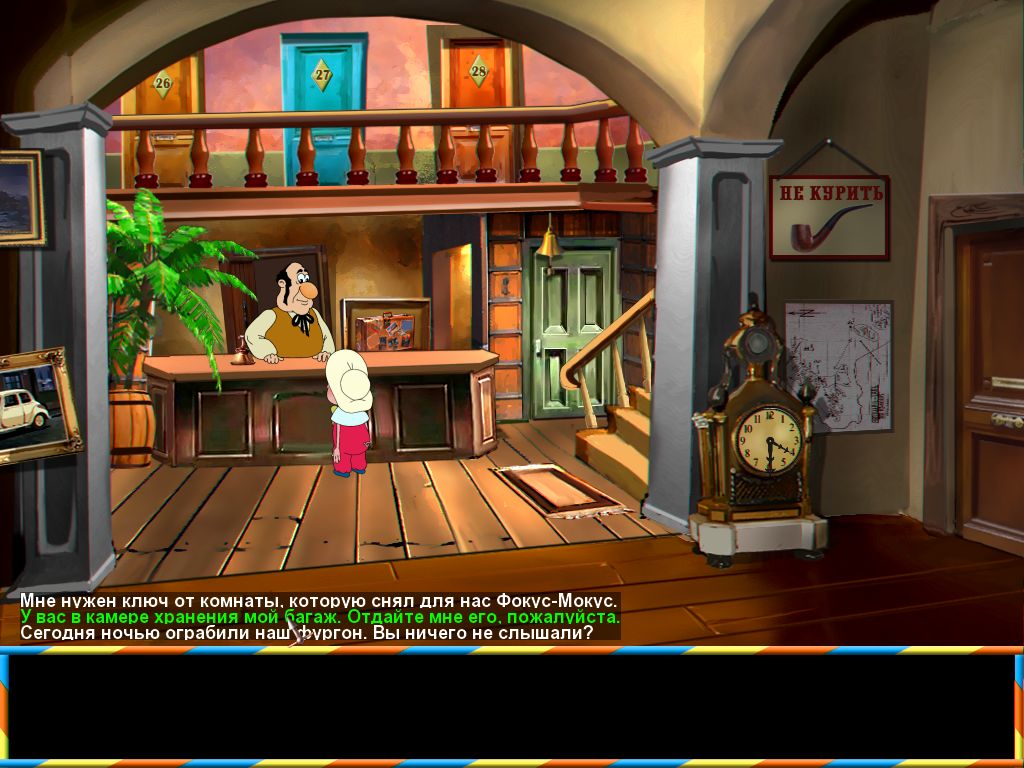 Сюжет Поросенок Фунтик. Новые приключения раскрывается через длинные диалоги между персонажами, в которых иногда появляется выбор реплик. Камера фиксирована сбоку, и её ракурс не меняется во время общения с NPC и в кат-сценах. Разговоры насыщены шутками, хотя полноценные заставки отсутствуют. Проект использует двухмерную рисованную графику, вдохновлённую стилем советских мультфильмов. Протагонист перемещается по локациям между экранами и может исследовать их. Игра предлагает подсказки по головоломкам, а NPC активно делятся советами и объясняют цели заданий. Курсор мыши меняет форму при наведении на объекты, показывая, какие действия доступны. Если не застревать на загадках, пройти тайтл можно всего за час.