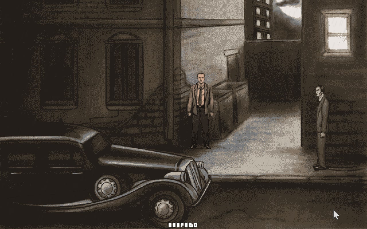 Casino Noir — это захватывающее point-and-click приключение, выполненное в уникальном стиле. Графика напоминает карандашные наброски, дополненные монохромным фильтром. Камера расположена сбоку, а во время диалогов плавно меняет ракурс, акцентируя внимание на лицах собеседников. Пользователь может выбирать темы беседы с NPC, что добавляет интерактивности.