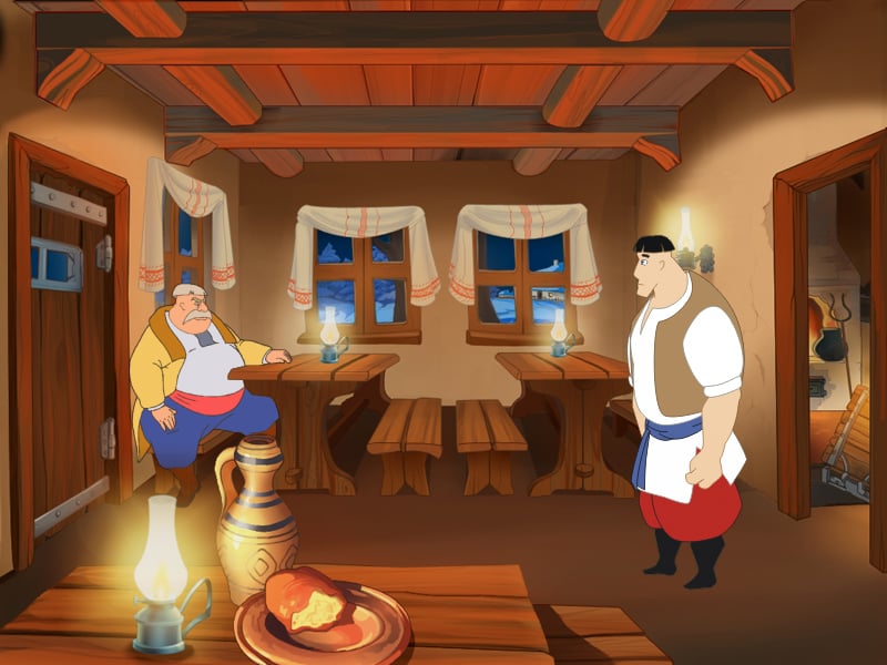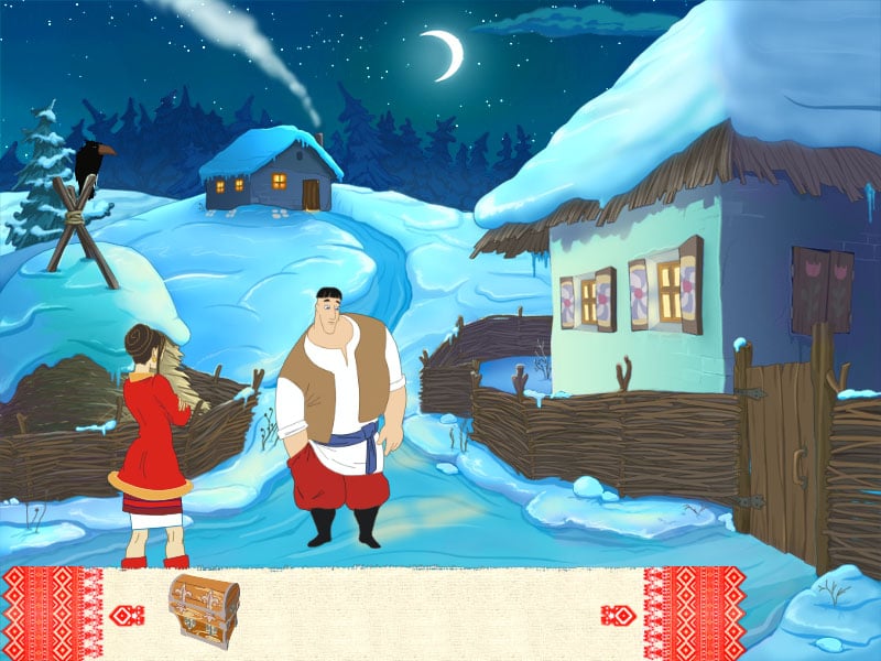 Адвенчура Вечера на хуторе близ Диканьки основана на произведении Николая Гоголя "Ночь перед рождеством". Завязка повторяет первоисточник: кузнец Вакула ухаживает за Оксаной и стремится добиться её руки. Однажды красавица просит его найти сапожки, которые носит сама царица.