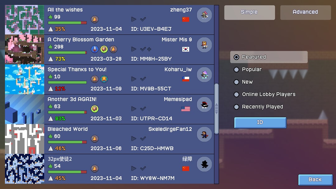 Онлайн-поддержка создателей контента – важная особенность тайтла. Пользователи со всего мира имеют доступ к общему каталогу локаций, который постоянно обновляется. Проект собирает статистику лучших результатов прохождения каждой карты, что позволяет отслеживать свои достижения и стремиться к новым высотам.