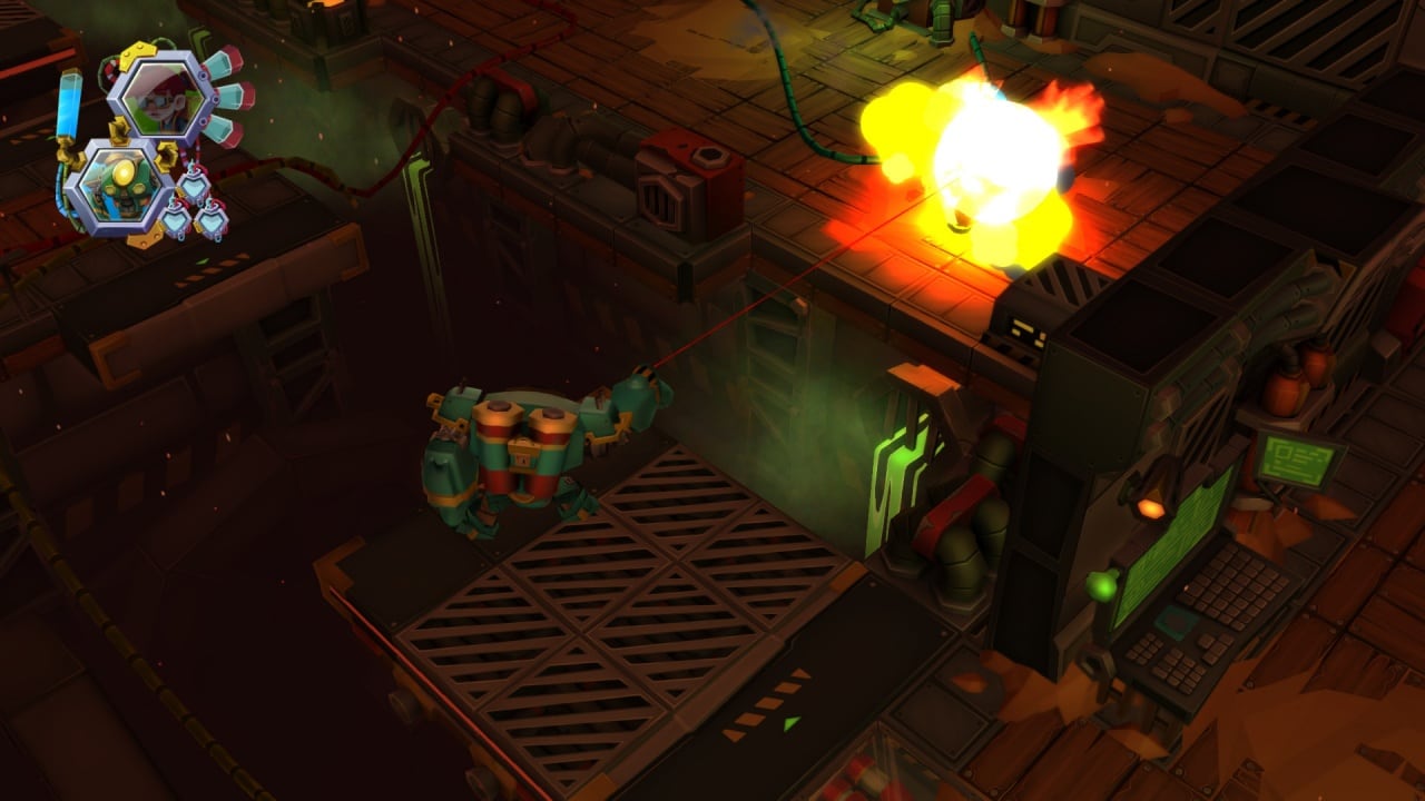Несмотря на то, что БОТ является верным другом Весте, он хранит тайны о произошедших событиях. Откуда появились агрессивные роботы? Куда пропало население? Эти вопросы требуют ответов. Спуститесь в вражеское логово, напоминающее лабораторию с зелеными трубами и пропастями, наполненными опасной жиже.