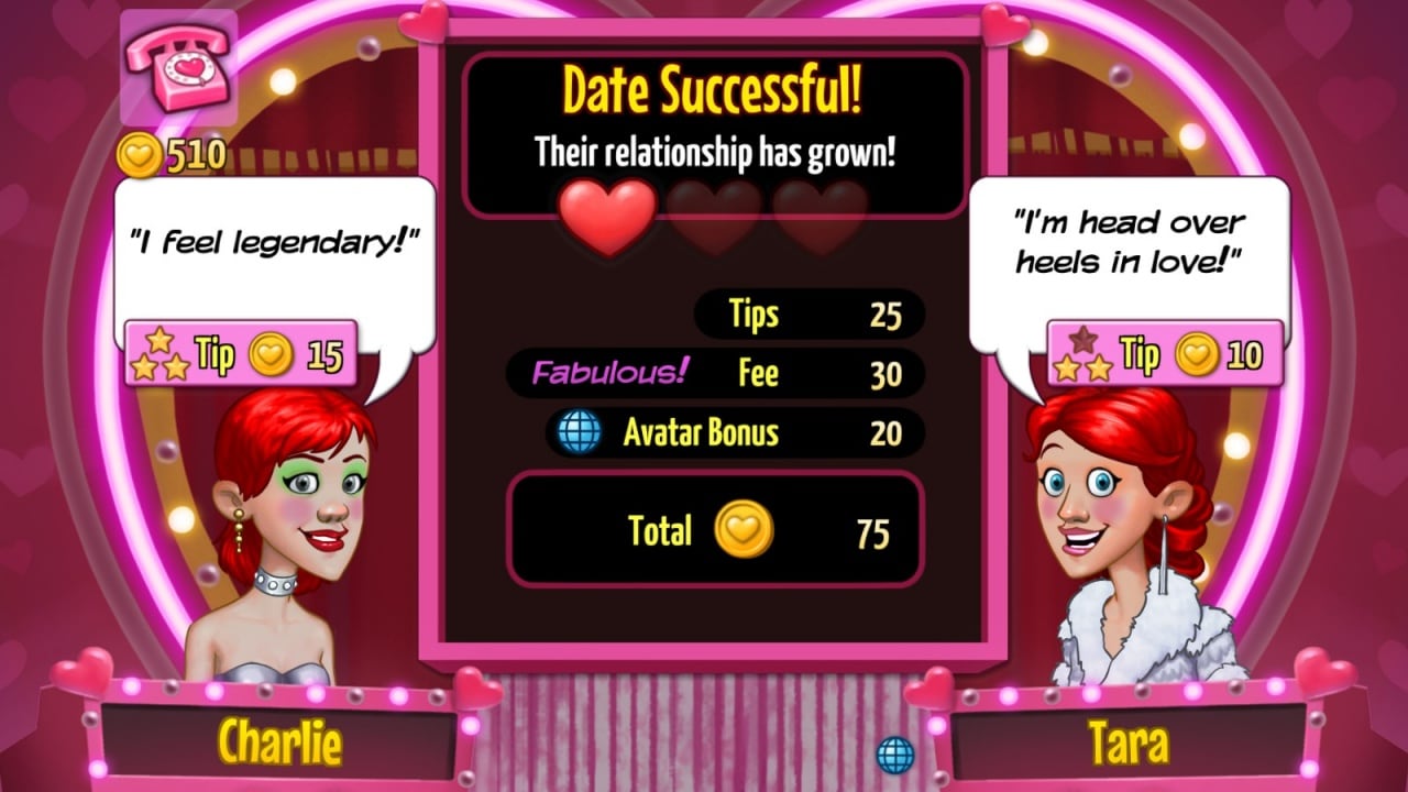 В процессе игры центральный персонаж зарабатывает репутацию, открывая новые локации для встреч и привлекая взыскательную клиентуру. Геймер может отправить своих подопечных на свидания с эффектным внешним видом и продуманными подарками, чтобы максимально увеличить шансы на успех. Романтика или разбитые сердца – выбор за вами.