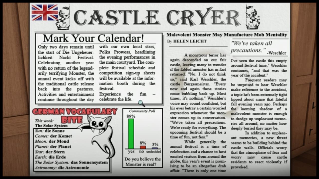 Nancy Drew: The Captive Curse — детективный квест о юной сыщице Нэнси Дрю. Основанный на 64-й книге "Пленённый свидетель", этот тайтл стал 24-й игрой в знаменитой серии. Сюжет разворачивается в Баварии, где витает легенда о чудовище, обитающем близ старинного замка Финстер. Люди исчезают, и местные жители связывают эти события с таинственным существом.