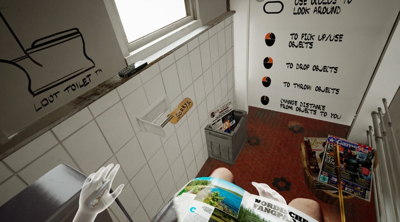 Процесс прохождения предлагает множество путей. Виртуальная реальность открывает возможности взаимодействия с любыми объектами. После похищения обстановка изменилась: физические предметы не проваливаются сквозь пол или стены, туалетная бумага почти исчезла, а остатки лежат под журналом. Однако бумага может телепортироваться, создавая зеленоватые спецэффекты.