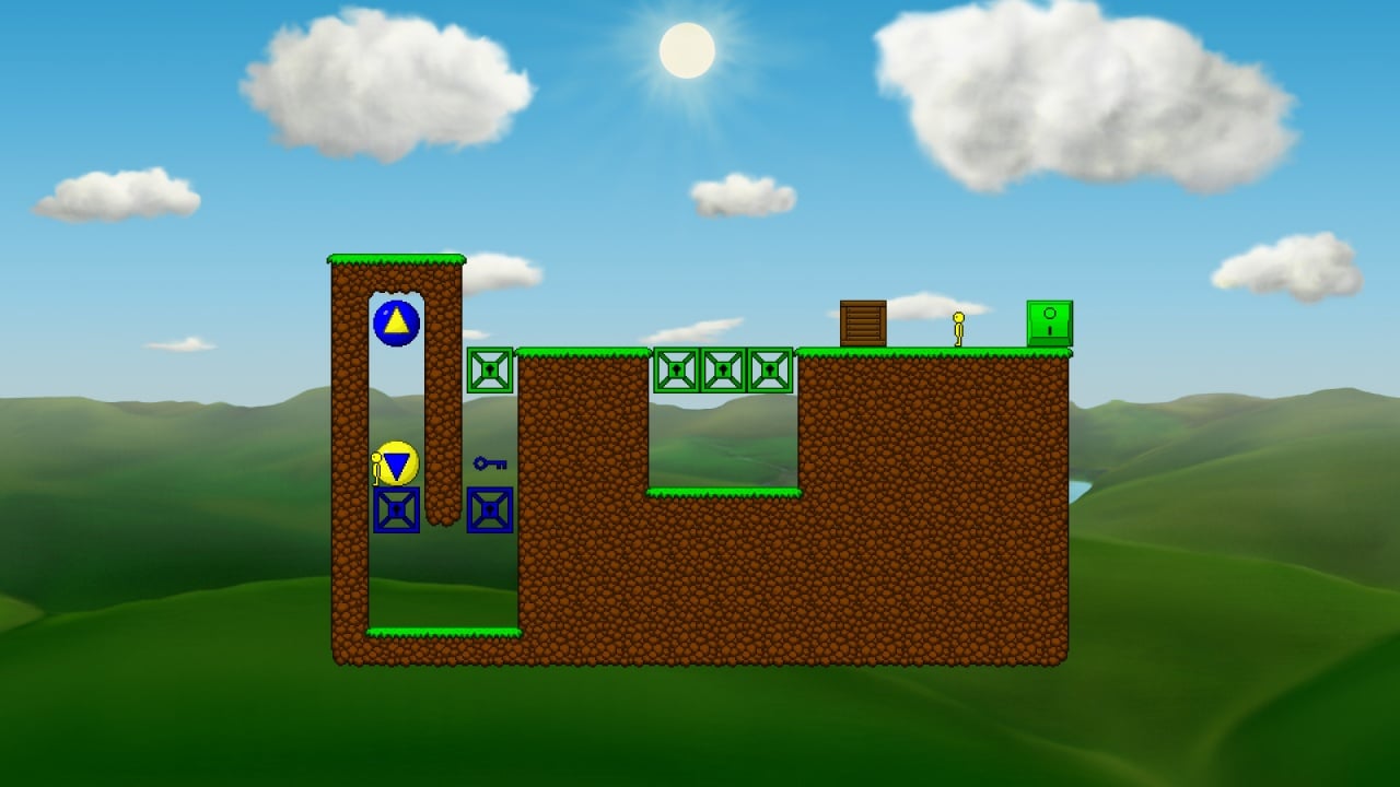 В геймплейе отсутствуют подсказки, и юзеру придется самостоятельно находить пути решения. Более 100 локаций с уникальными ландшафтами, препятствиями и полезными объектами ждут своих героев. Некоторые блоки не позволяют прыгать, а человечки могут передвигаться только по определённым цветным квадратам или преодолевать бездонные пропасти. Преграды постоянно меняются, предлагая хардкорные комбинации.