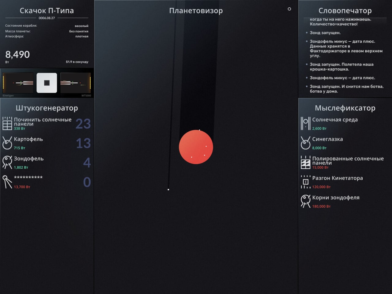 SPACEPLAN – казуальное инди-приключение в жанре кликер, где пользователю предстоит многократное нажатие на объекты для ускорения создания или выполнения действий. Минималистичная графика выделяется малым количеством деталей, позволяя сосредоточиться на интерактивных элементах, выполняющих ключевые функции. Сеттинг и атмосфера проекта вдохновлены работой Стивена Хокинга "Краткая история времени".