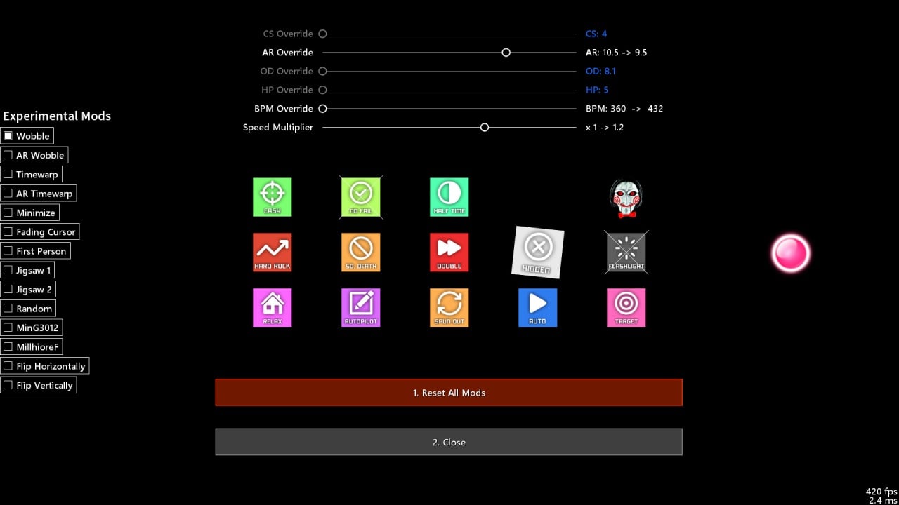 Игрок может регулировать темп полета "битов" – маленьких геометрических фигур, которые необходимо разбивать для успешного прохождения этапов. Настройка также включает размер "битов", шансы на ошибку и количество здоровья безымянного виртуального протеже. Дополнительные возможности кастомизации позволяют вносить новые сложности: от тряски экрана до инверсии движений. Бесконечный режим предлагает пользователю зарабатывать как можно больше очков.