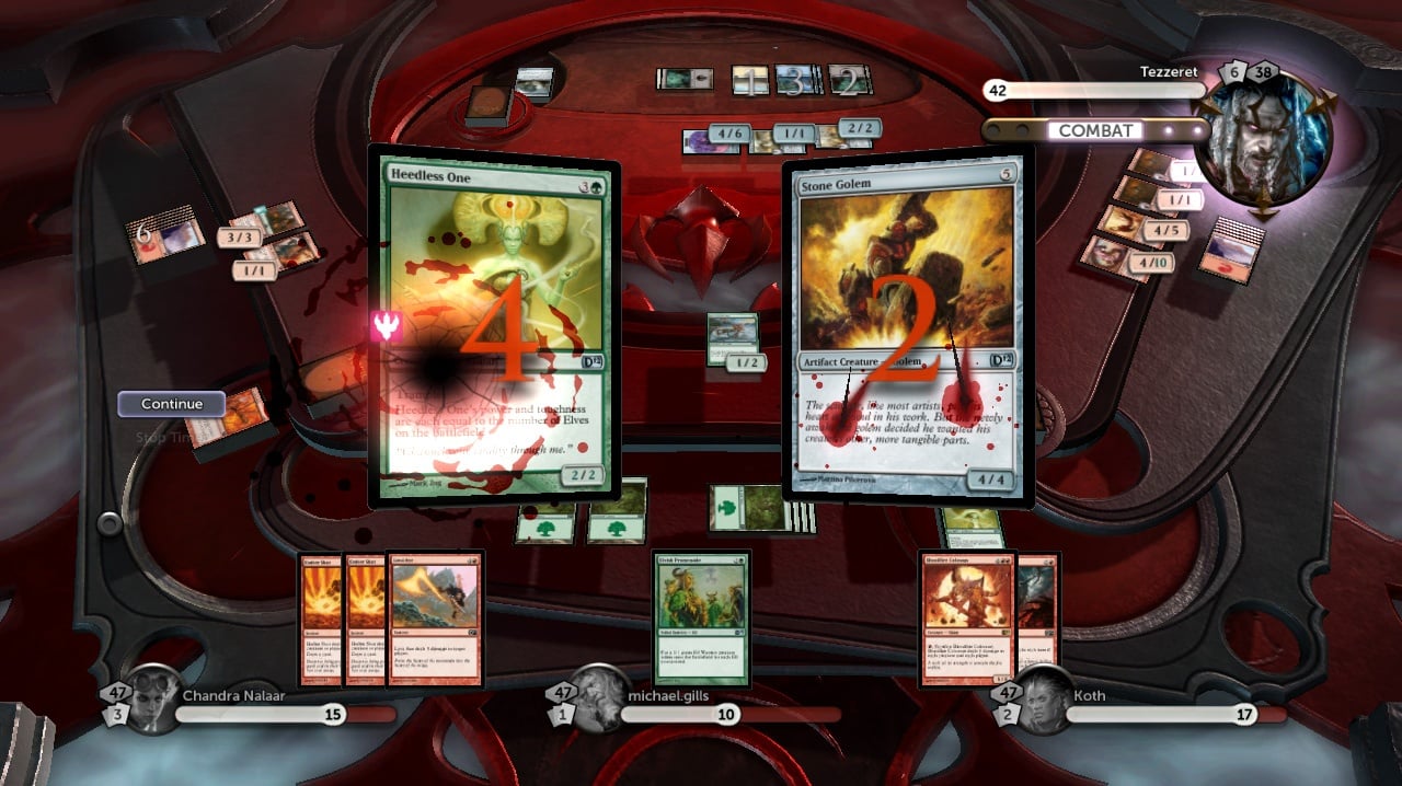 Пользователи могут активировать мгновенные способности, применять одноразовые эффекты, вызывать мощных существ для атаки или защиты. Каждый матч проходит в пошаговом режиме, где участники по очереди разыгрывают карты земель, активируют способности и отправляют на врагов своих созданий. Сражение продолжается, пока здоровье всех участников, кроме одного, не достигнет нуля. Начальное здоровье составляет 20 единиц, с возможностью редкого восстановления.