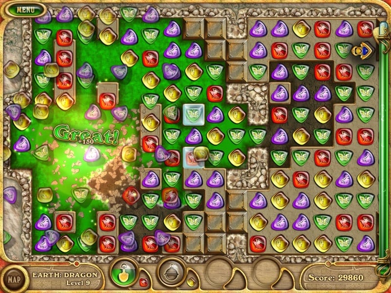 Чтобы вернуть стихии, необходимо получить доступ к четырем древним книгам. Для этого нужно пройти 16 уровней. Правила просты: составлять длинные последовательности из разноцветных камней, меняя их местами. Но есть интересная особенность — нужно провести поток воды через весь экран. И всё это под давлением времени.