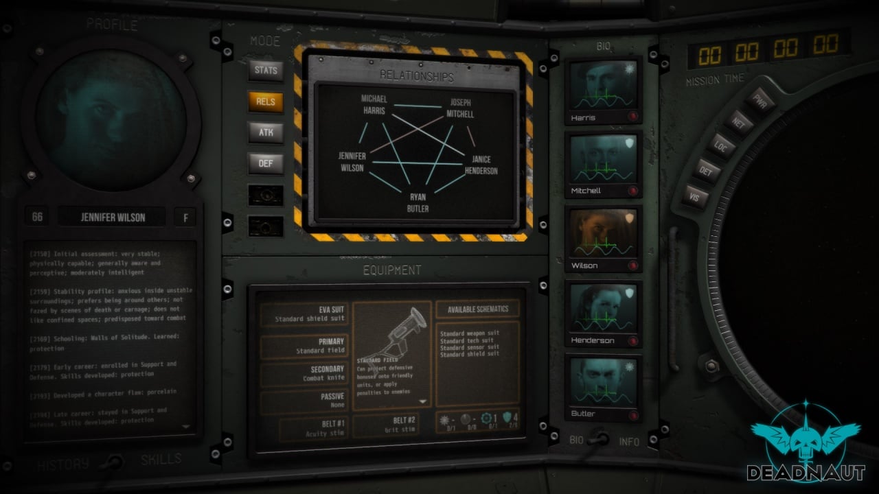 Интерфейс напоминает командный центр, где командир разведчиков ломает голову над панелями, экранами и переключателями. Операции проводятся на реликтовом космическом судне с узкими коридорами, угрожающими обрушением от малейшего движения. Участников миссии можно выбирать по личностным характеристикам, представленным в детализированных досье. Геймер взаимодействует с профессиональными космонавтами, каждый из которых обладает уникальными навыками. Однако межличностные антипатии могут отравить атмосферу команды. Координатор должен следить за тем, чтобы между конфликтующими персонажами не возникали ссоры, так как они снижают эффективность действий и увеличивают риск катастрофы. Расформирование команды на группы может спровоцировать опасные последствия, ведь ресурсов может не хватить для отражения внезапной атаки.