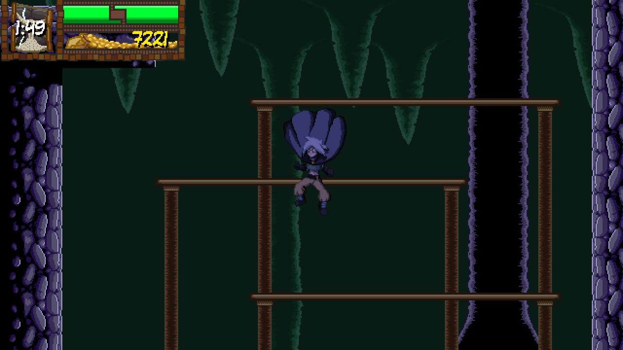 Necrolepsy – экшен-платформер с элементами метроидвании. Здесь царит двухмерная пиксельная графика, а камера фиксируется сбоку. Открытого мира нет, но тайтл предлагает пройти 4 масштабных уровня, наполненных множеством комнат и скрытых локаций. Исследование пространства – ключевой элемент геймплея, а прогресс фиксируется на контрольных точках.