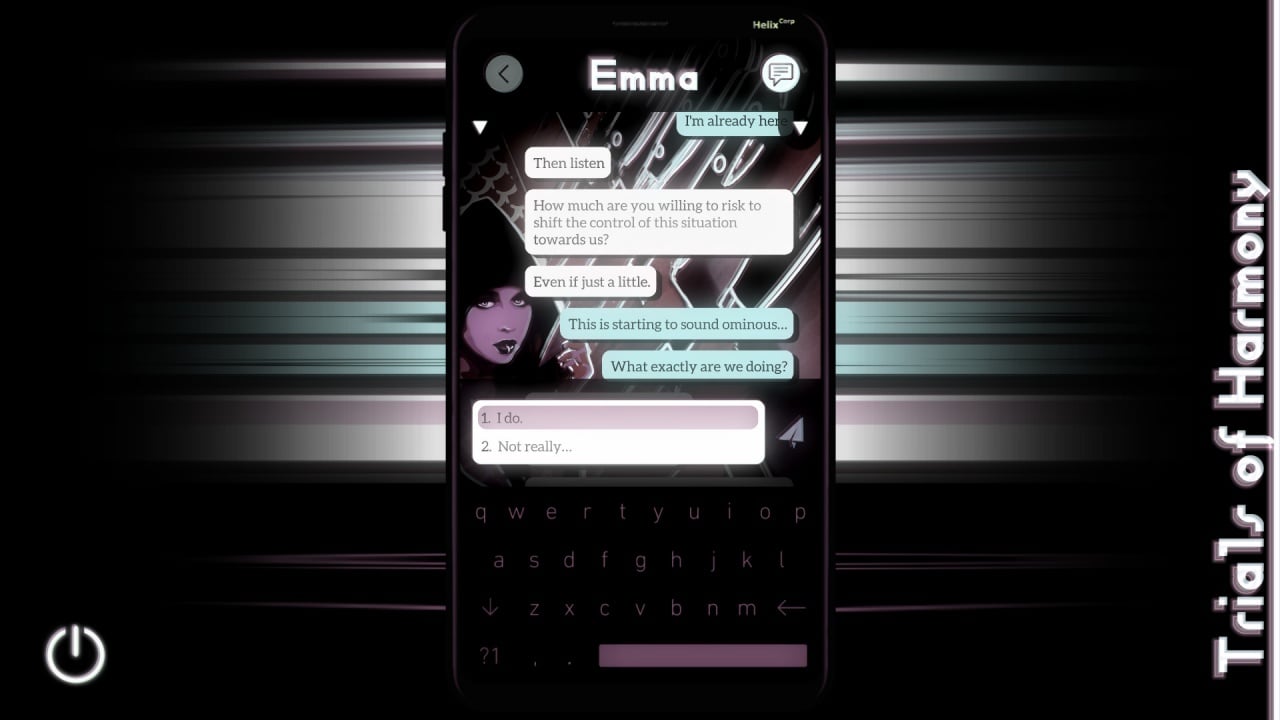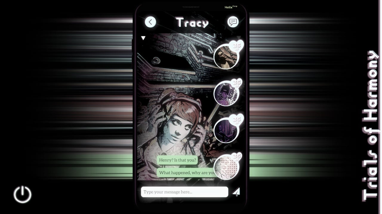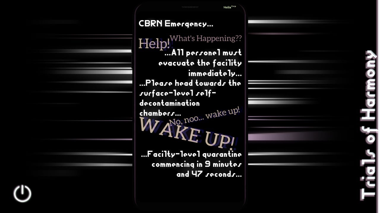 Trials of Harmony — это свежий взгляд на жанр визуальной новеллы. Сюжет вращается вокруг персонажа, который оказался в изоляции. Связь с внешним миром осуществляется через смартфон, где его поджидает таинственный автор Смертельной Игры. Он предлагает пройти ряд испытаний, которые могут пролить свет на загадочные события.