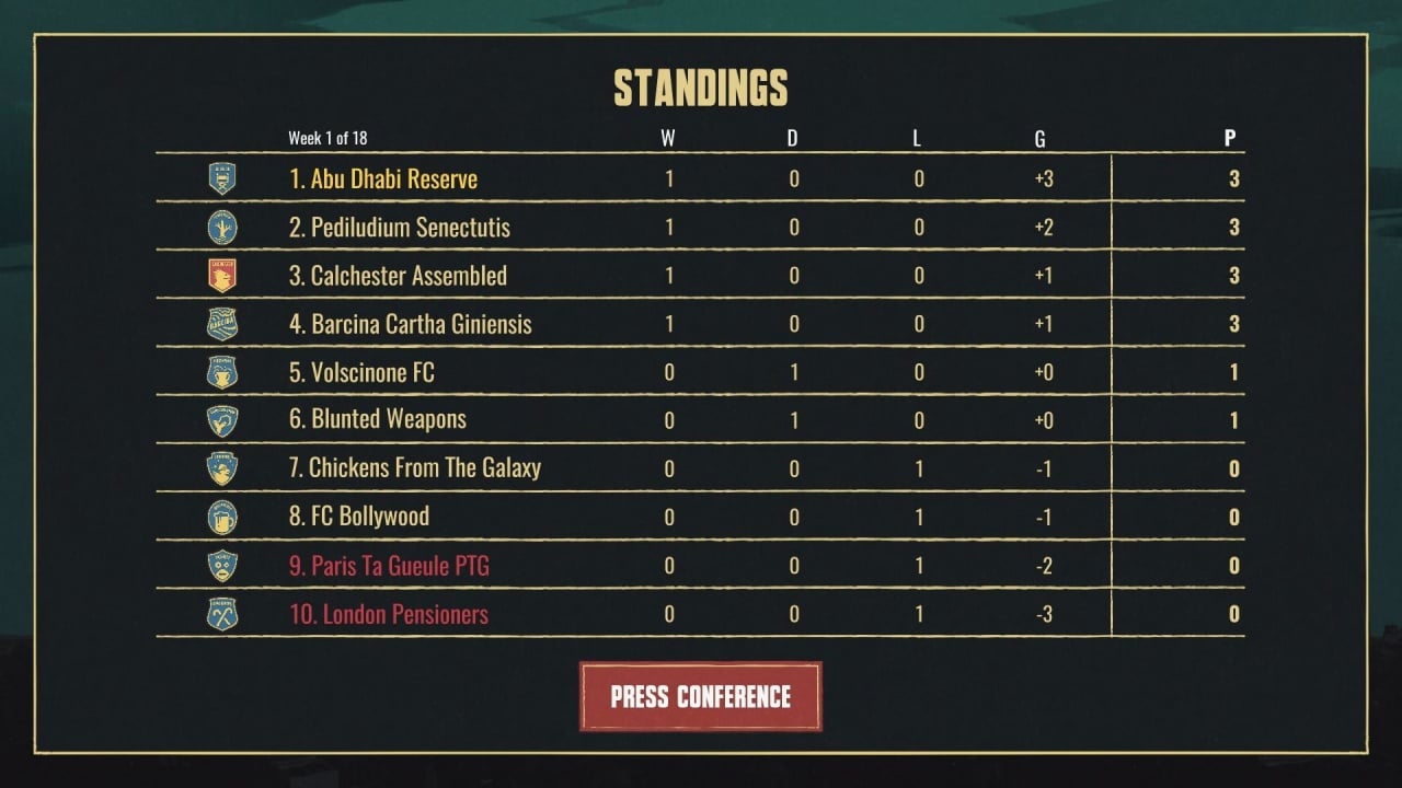 Протагонисту предстоит выжить 18 недель в сезоне. Задача осложняется риском потерять место в любой момент. Коррупция, наркотики, преступность и темное прошлое Рокко играют против него. Игра делится на две фазы. Первая — чтение диалогов, выбор реплик и действий. Система карточек позволяет принимать жизненно важные решения, влияющие на дальнейшее развитие сюжета. Во второй фазе геймер управляет футболистами в пошаговом режиме. На поле возникают различные ситуации, требующие выбора между риском и контролем. Риск может привести к провалу с определенной вероятностью, в то время как желание сохранить статус-кво позволяет поддерживать ситуацию стабильной.