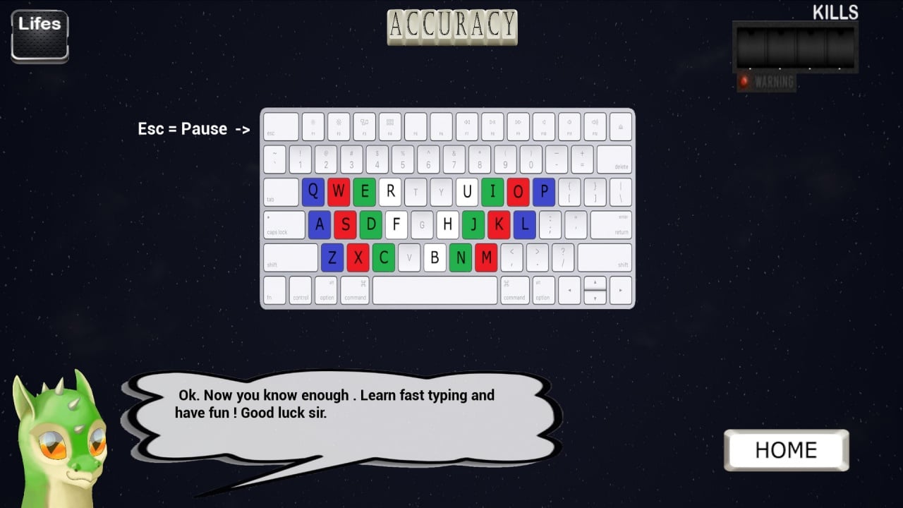 Кроме того, Keyboard Killers служит отличным обучающим инструментом. Пройдя хотя бы на среднем уровне, вы освоите слепую печать. Но будьте осторожны — иногда клавиатура может оказаться в стене, если нервы не выдержат. Выбирайте из 4 уровней сложности — от новичка до настоящего профи.