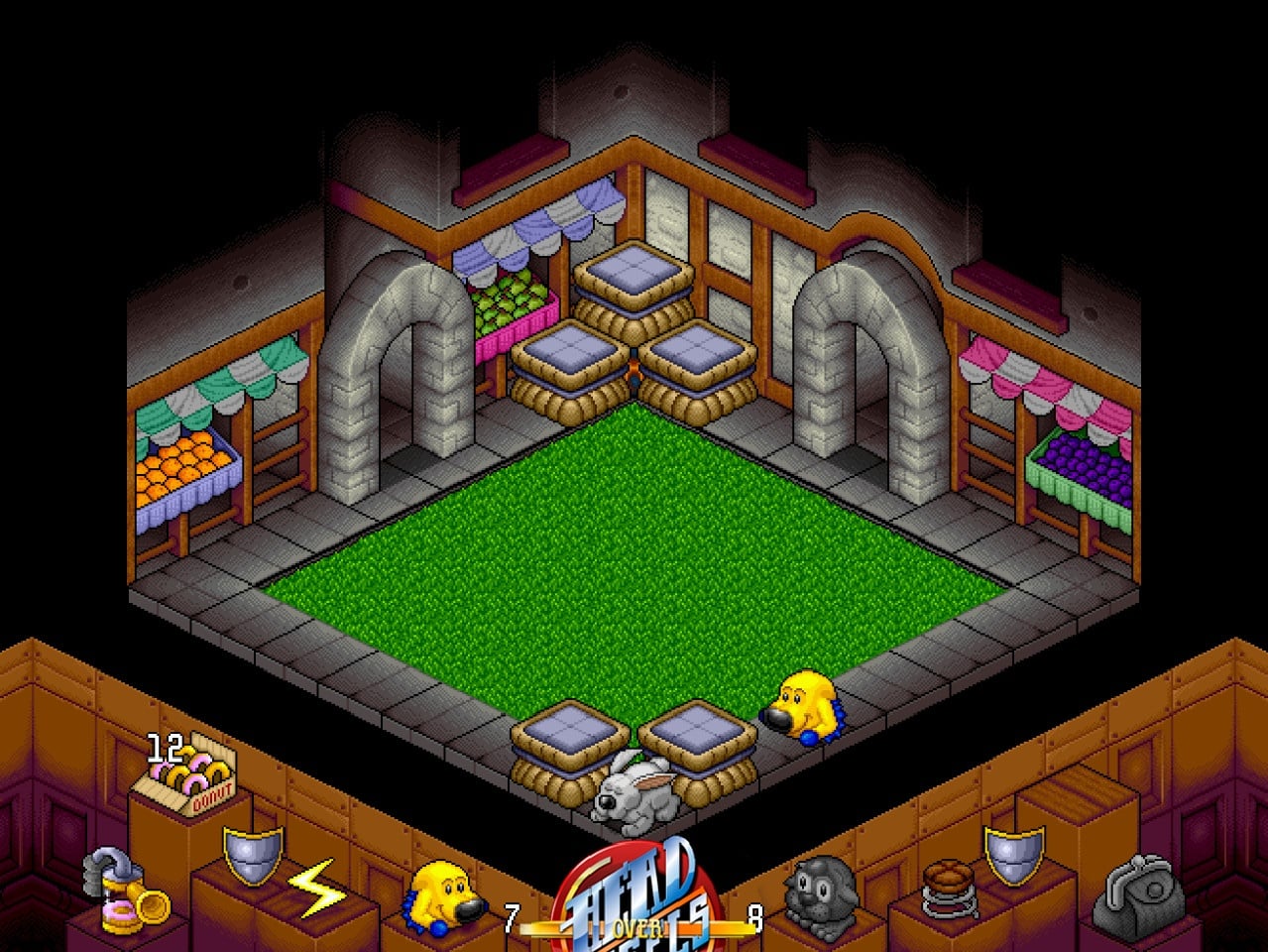 Head Over Heels — это экшен-адвенчура с простым, но интригующим сюжетом. Действие разворачивается на планете Свобода. Жители этого континента отправляют двух лучших агентов на миссию по освобождению пяти планет, попавших под контроль зловещей империи Черного Клыка. Однако оба героя оказывается в плену, и теперь вам предстоит спасти их. Пройдите через сложные лабиринты, состоящие из 300 уникальных помещений. В процессе соберите пять специальных корон. Главные персонажи — Голова и Нога, напоминающие кота и пса. Управление ими осуществляется по отдельности.