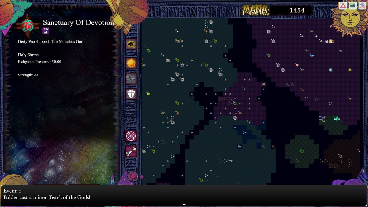 Основным ресурсом в этом проекте является мана. Она накапливается с течением времени и зависит от численности населения в галактике. Геймплей Gods of Havoc: Into the Void строится на пошаговой механике. С каждым ходом проходит время, и мана накапливается. Если ее недостаточно для мощного заклинания, придется ускорять ходы и ждать, пока ресурс не восполнится. Процесс может показаться однообразным, так как действий немного, и порой приходится просто дожидаться. Однако доступен режим Pass-Time, позволяющий перематывать события с записью в журнале. Иногда при перезапуске проект может зависать, особенно на больших картах, и в таких случаях потребуется использовать диспетчер задач для завершения программы.
