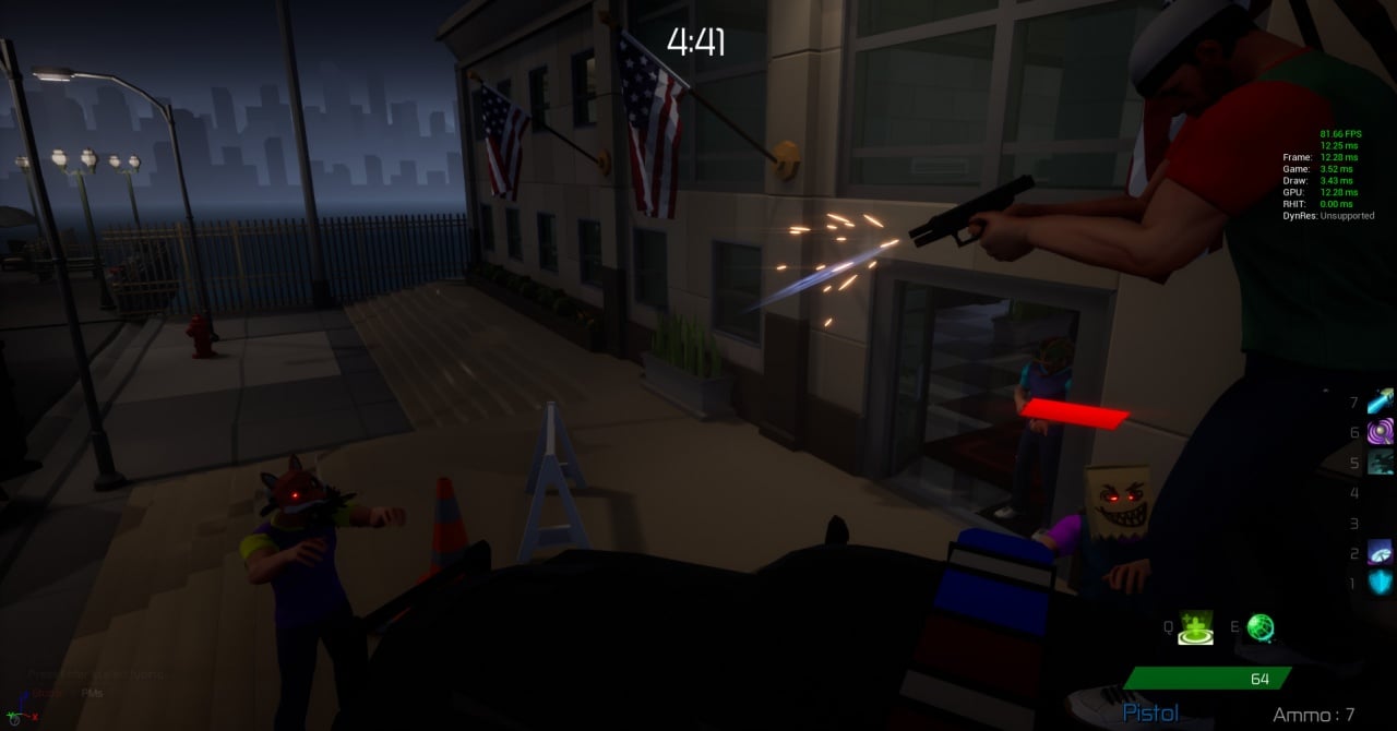Проект позволяет пуститься в отрыв, устраивая серии убийств или сражаясь с нежитью в образе зомби. Процесс наполнен возможностями — используйте не только привычное оружие, но и взрывчатые элементы. Выбирайте различные матчи, объединяйтесь с друзьями в борьбе за выживание или действуйте в одиночку против всех. Интерфейс яркий и динамичный, однако русская локализация отсутствует. Возможны баги, поэтому лучше приглашать товарищей сразу, так как сервера могут оказаться пустыми.