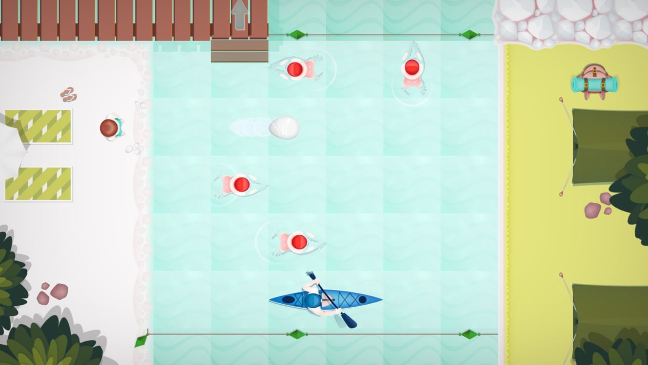 NPC ведут себя по-разному. В некоторых раундах пловчихи могут пропускать ходы, останавливаясь посреди водоема, в то время как другие используют доски и занимают сразу две клетки. Имеется 12 вспомогательных средств: ласты, позволяющие за один шаг преодолеть несколько ячеек, буй или мяч, который временно обездвиживает соперниц. Можно прокатиться на байдарке или воспользоваться водяным пистолетом! В некоторых уровнях добавлены дополнительные препятствия — волны, медузы и крабы, а часть водоемов разделена наполовину. Столкновение с NPC приводит к завершению уровня и необходимости начинать заново. Реалистичности добавляют звуки: шум воды, кваканье лягушек и крики чаек.