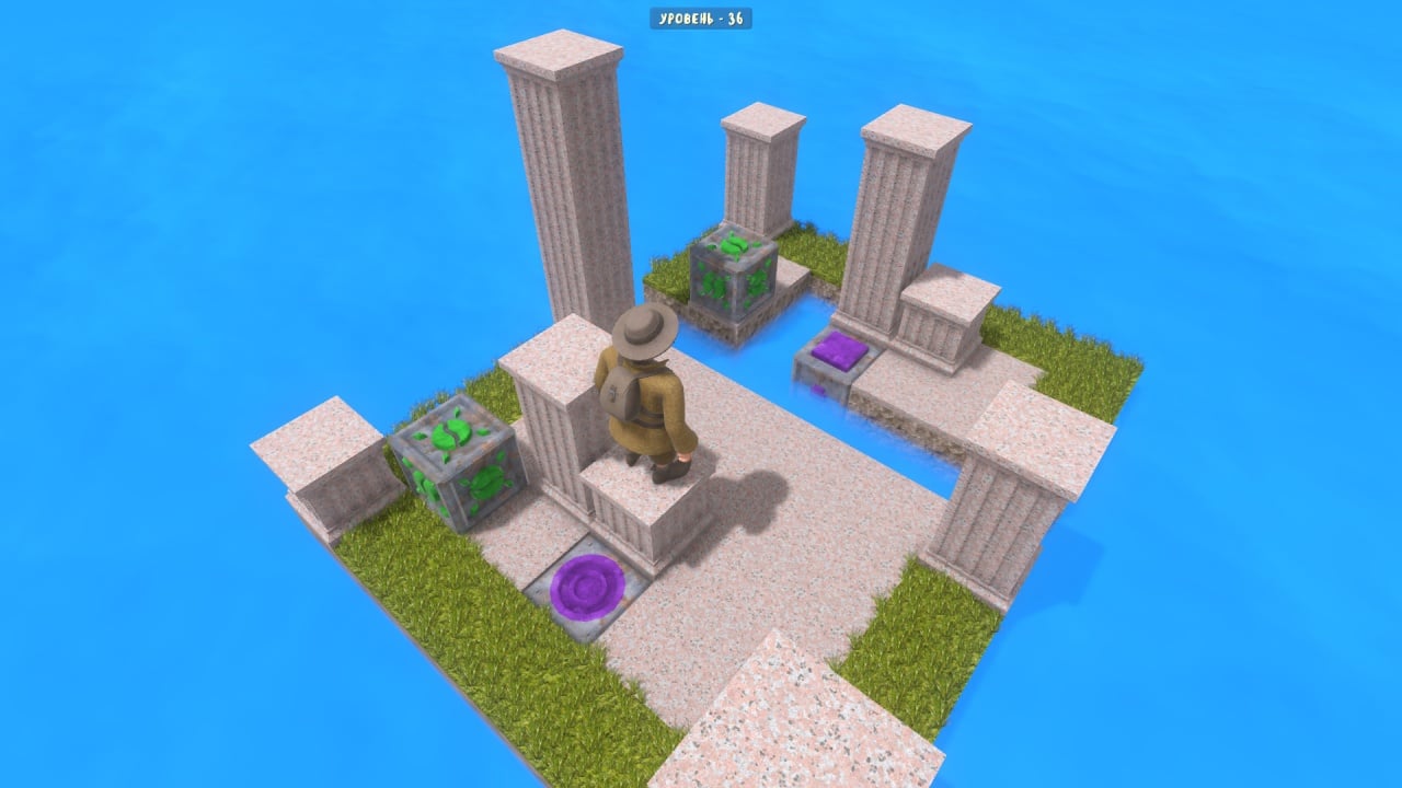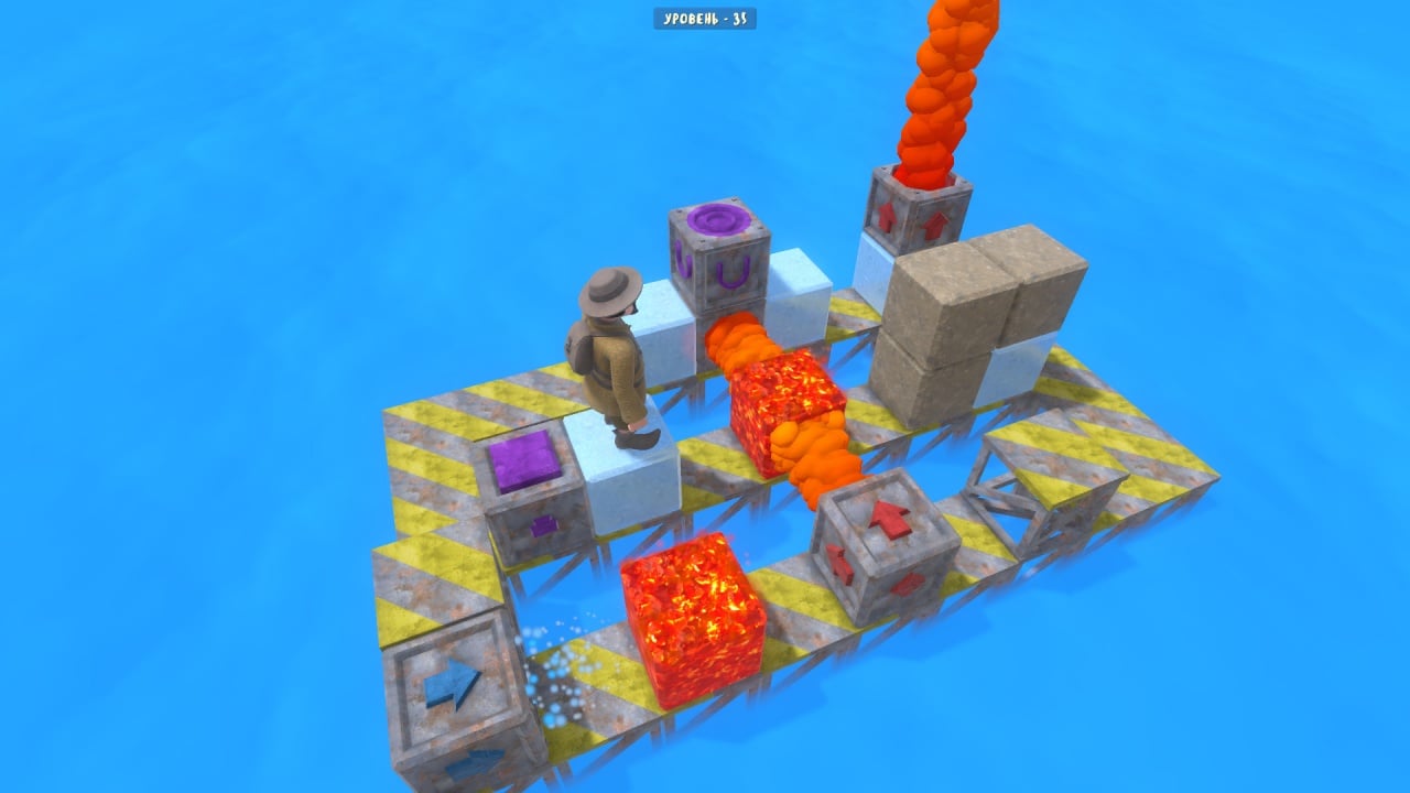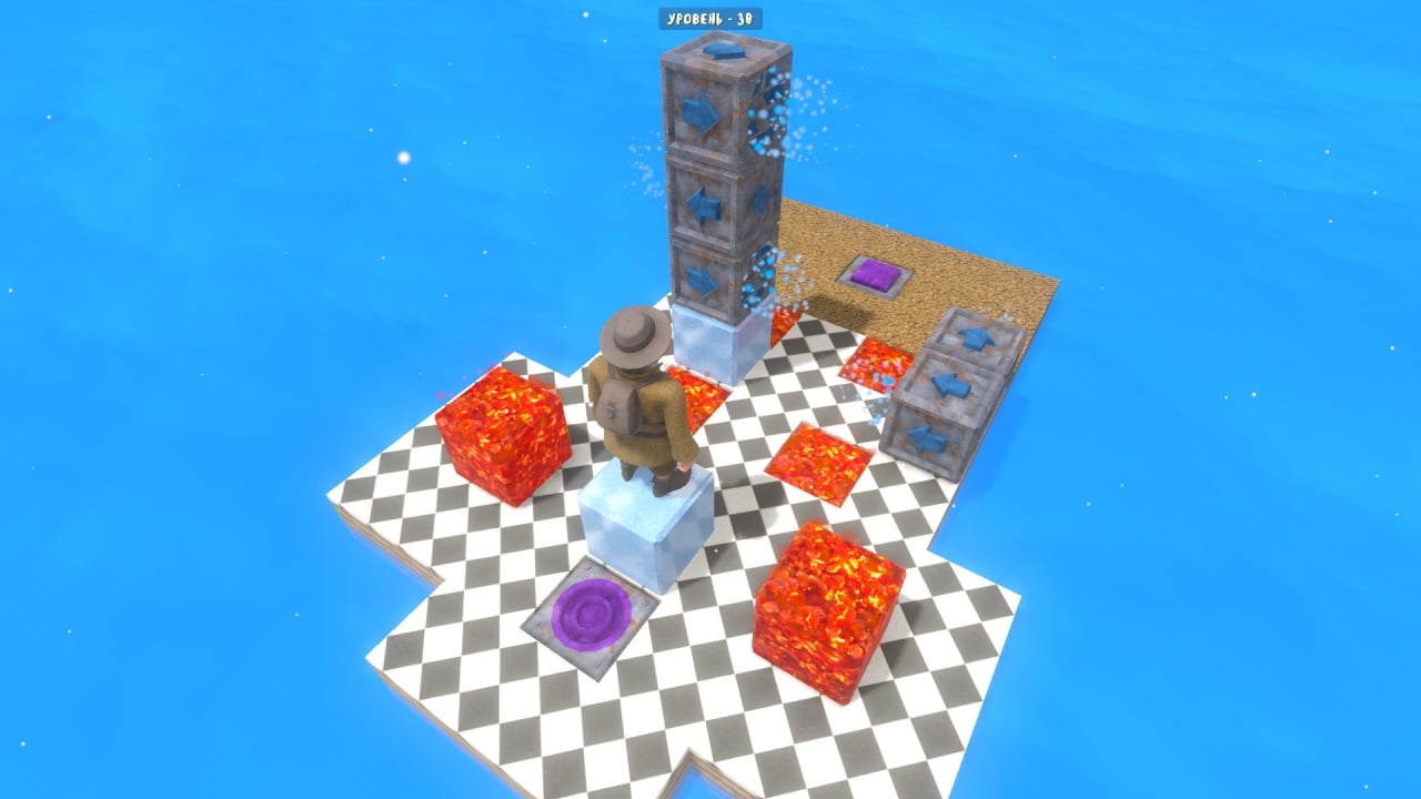 Тайтл включает 40 уровней. Каждая площадка содержит различные кубы из разных материалов. Задача неизменна: добраться до фиолетовой кнопки или сбросить на неё твердый объект. Это активирует портал, который перенесет на следующий этап. Персонаж может двигаться во всех направлениях, толкать один объект и взбираться на высоту одного куба.В решении загадок участвуют восемь элементов: